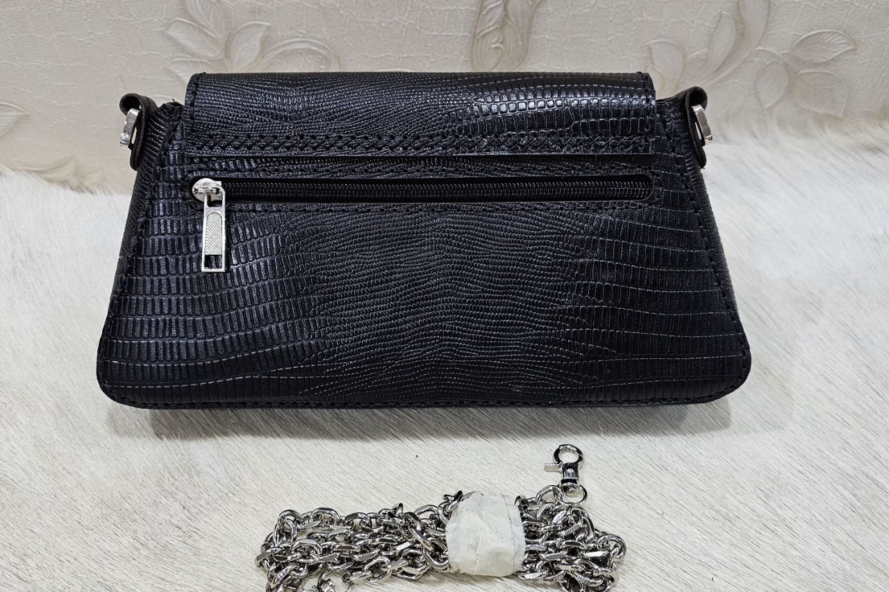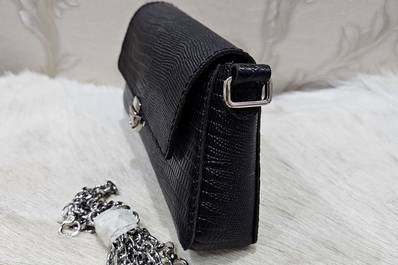 کیف دوشی نقلی چرم گاوی طرح لیزارد و دست‌دوز با نخ ترک